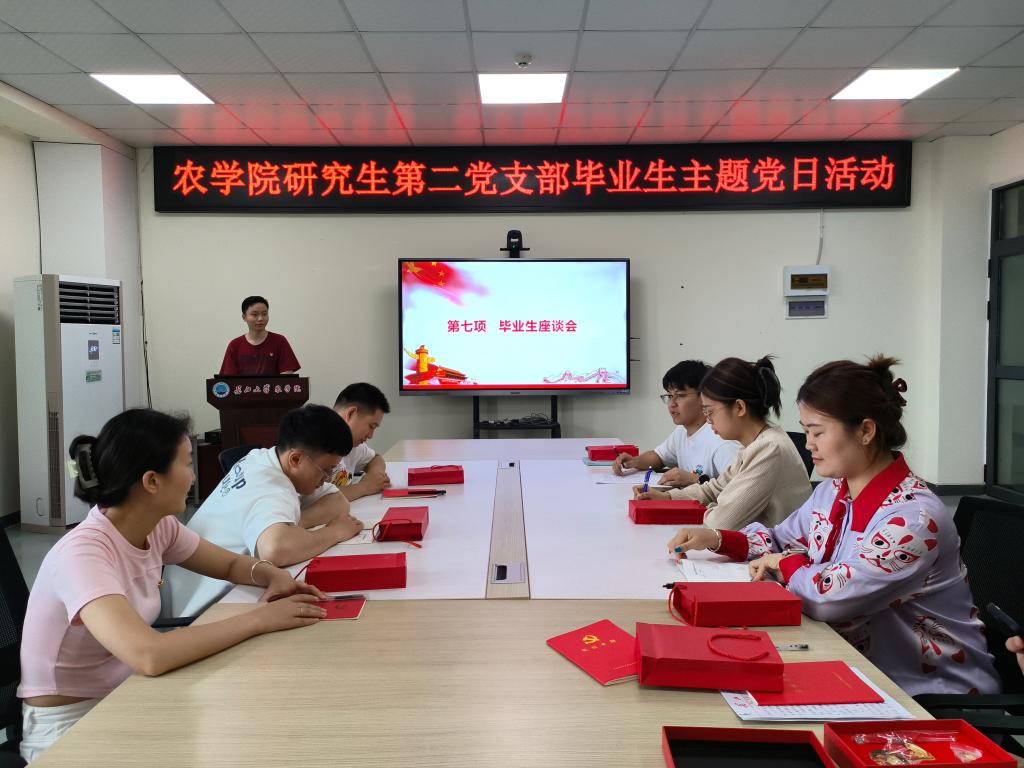 活动最后,支部书记付雪娇同志对本次主题党日活动进行了总结。她对活动的内容与形式给与充分肯定,并对毕业生党员提出要求,要求他们无论身处何地,无论面临何种困难和挑战,都要始终拥护中国共产党的领导,要有坚定的政治信仰,要继承和发扬党的优良传统,迎难而上,冲锋在前,真正做到一个党员、一面旗帜,同时,她呼吁全体党员要以实际行动续写入党誓词,用责任和担当、服务与奉献,为农业强国贡献青春力量。