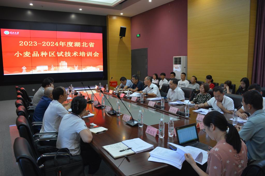 会议由湖北省种子管理局品种管理科科长王新刚主持。湖北省种子管理局副局长董新国,湖北省小麦品种审定委员会委员、正规滚球app平台官网常务副院长(正处级)方正武等分别进行了致辞。