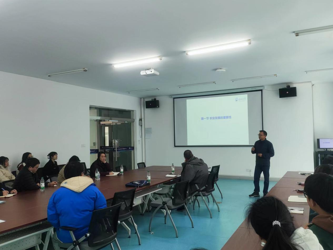 本次报告中,张学昆教授以农业发展的重要性为题,指出粮食安全是国家安全的重要基石,农业科研必须坚持问题导向,聚焦粮食安全、种业振兴等国家重大需求为方向,突破卡脖子关键技术,确保中国人的饭碗牢牢端在自己的手上,且装上自己的粮食。同时勉励青年学子,厚植三农情怀,学农爱农,成为一名懂农业、爱农村、爱农民的新时代农业青年。