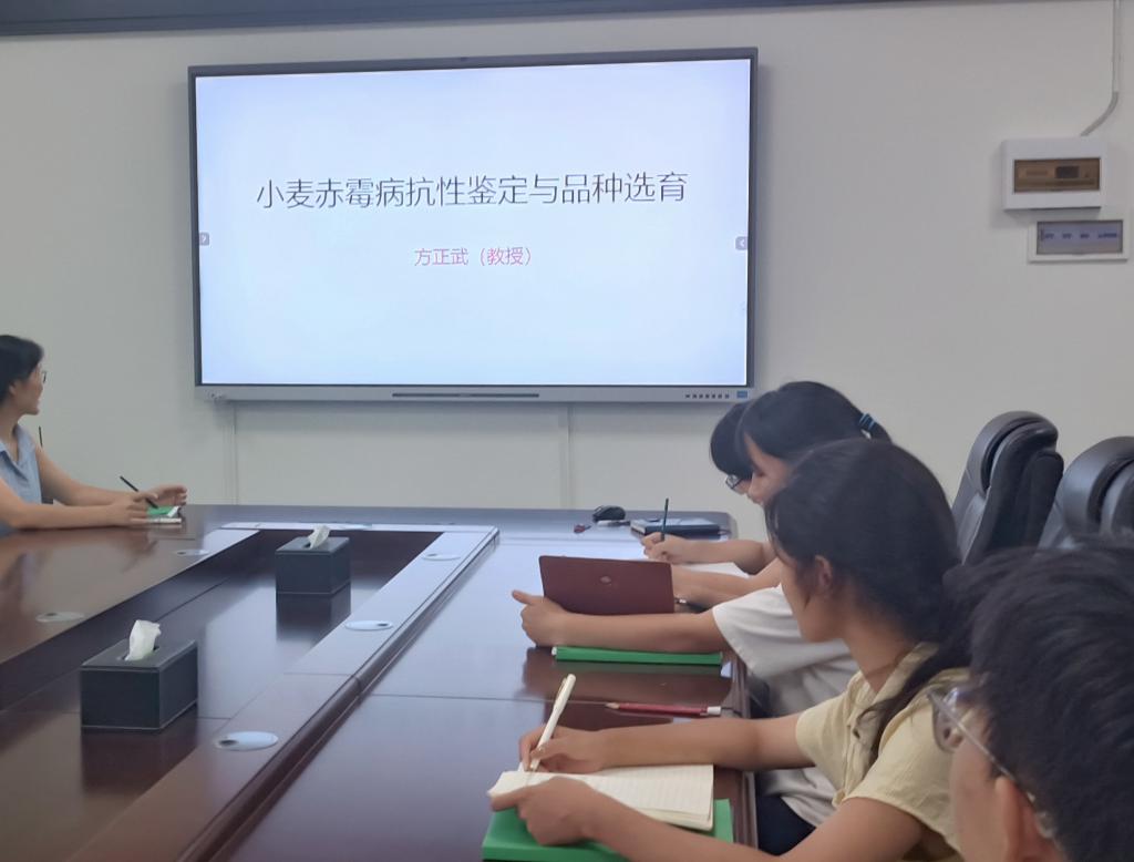 在本次学术报告中,方正武教授系统讲解了小麦赤霉病的发病特点与危害,重点介绍了近年来国内外有关小麦赤霉病抗性基因的挖掘、抗病材料鉴定和新品种选育方面的突破,并以本团队选育的“长麦”系列小麦品种为例,分享了在抗赤霉病小麦新品种选育过程中的宝贵经验,激励大家学农爱农。