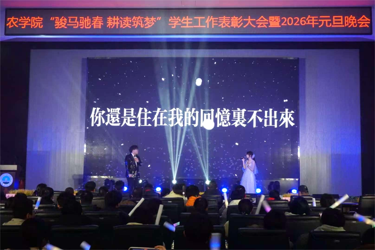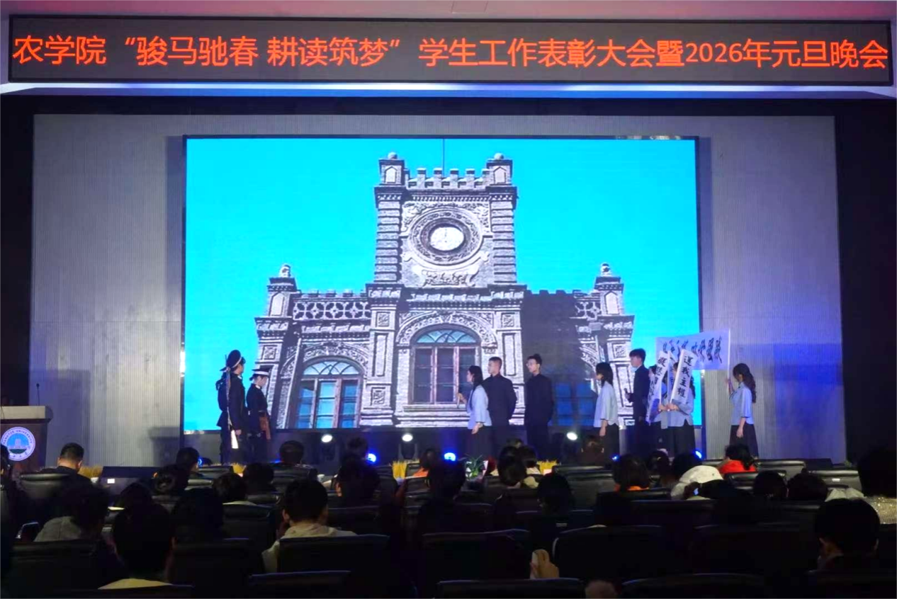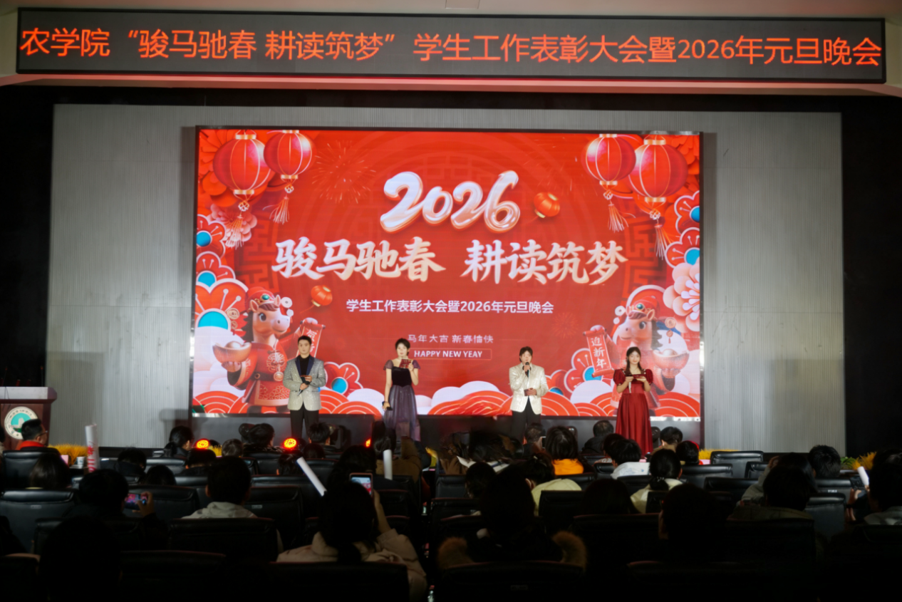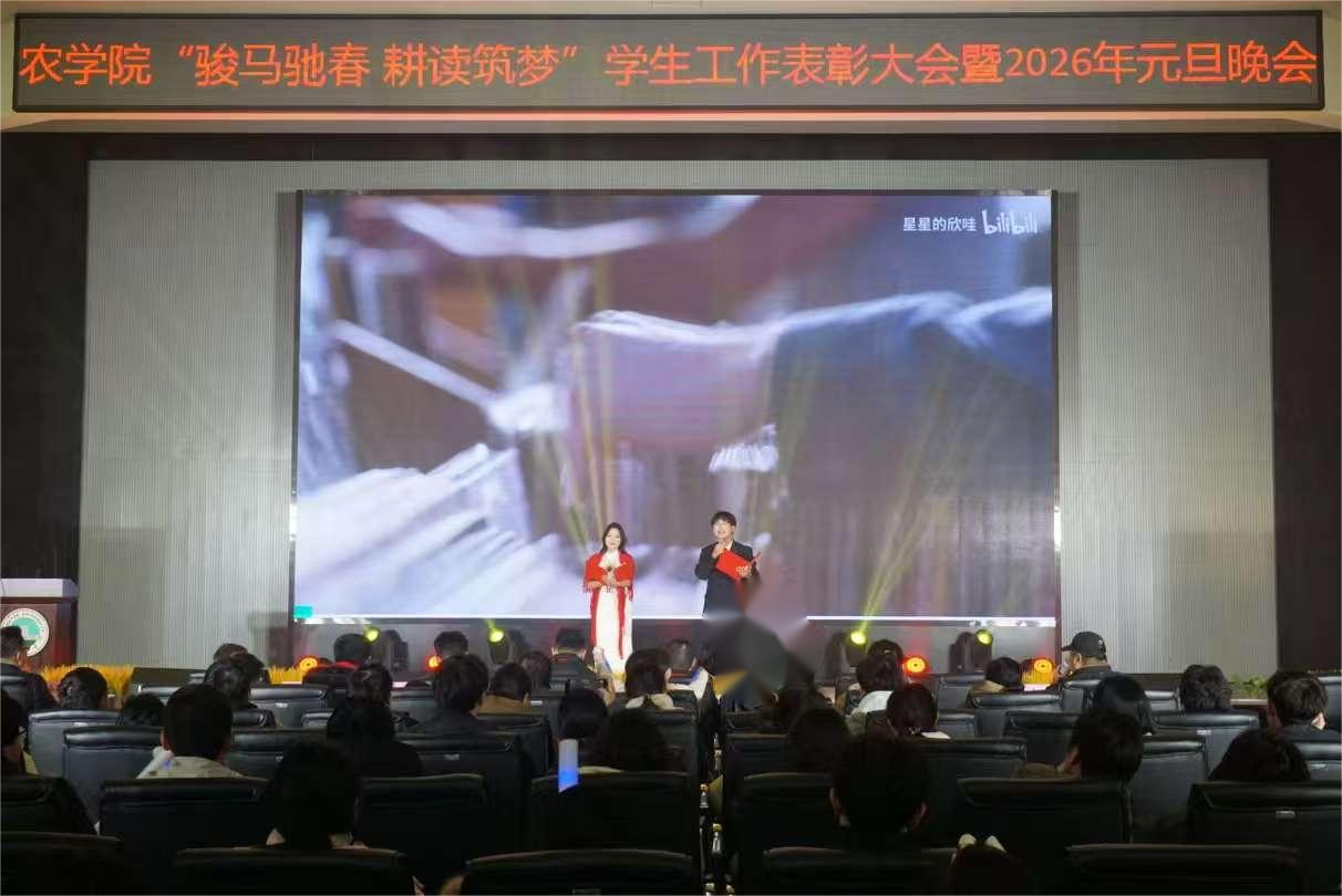 (通讯员 向建华 徐馨悦 严树彬 郑怡乐 宁菀婷 王思雨)灵蛇辞旧承佳绩,火马奔腾启新程。12 月 26 日晚,正规滚球app平台官网 “骏马驰春·耕读筑梦” 学生工作表彰大会暨 2026 年元旦晚会在农科大楼 1058 报告厅隆重举行。正规滚球app平台官网本科生院副院长颜学俊、研究生院副院长黄龙、校团委科长刘冬冬、园艺园林学院学工办主任张颖旭、化工学院团委书记周学素及兄弟学院的师生代表等嘉宾,与正规滚球app平台官网党委书记周锦华、党委副书记尹小华、院长助理邓建新、农资系主任李燕丽及学工队伍、任课教师、学子们齐聚一堂,共赴这场融青春风采、农科学子担当与家国情怀于一体的年度盛会。