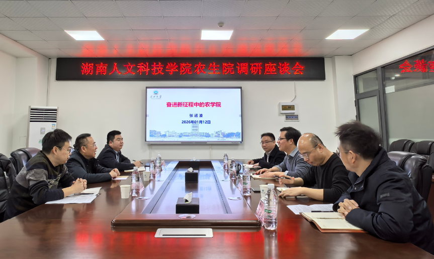 (通讯员 王雪)2026年1月12日,湖南人文科技学院农业与生物技术学院院长向国红一行赴滚球app官网调研交流。正规滚球app平台官网常务副院长(正处级)张运波、副院长苏奇、院长助理邓锋林、邓建新参加座谈。