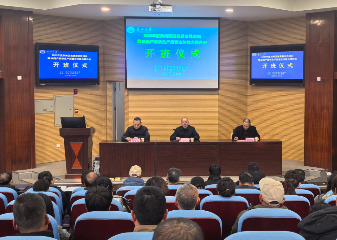 (通讯员 吴霞)1月16日上午,荆州区2025年粮油稳产保供生产经营主体能力提升培训开班仪式在正规滚球app平台官网隆重举行,荆州区2025年高素质农民培育项目正式拉开帷幕。来自全区121名种植大户、合作社带头人等新型生产经营主体代表参加培训。 荆州区农业农村局党组书记杨水垓、种植业管理(科技与人才)股负责人郑明川出席开班仪式,正规滚球app平台官网副院长唐生标主持仪式。 杨水垓为全体参训学员讲授行政第一课,内容丰富、高屋建瓴,深入分析了当前粮油稳产保供工作的战略意义和行业发展趋势,从国家政策、形势讲到荆州区农业发展实际,进一步明确了荆州区农业高质量发展的方向。他期望,全体学员珍惜学习机会,强化责任担当,提升专业技能,锚定方向,通过学习努力成为保障区域粮食安全、推动乡村振兴的骨干力量。 本次培训从1月15日开始至1月25日结束,为期10天。培训聚焦粮油稳产保供和生产经营主体能力提升核心任务,系统开展粮油生产关键技术、智慧农业、经营管理创新等综合素养和专业技能培训,注重实践实训,着力培养懂技术、会经营、善管理的高素质农民队伍。 (审核唐生标 编辑向建华)