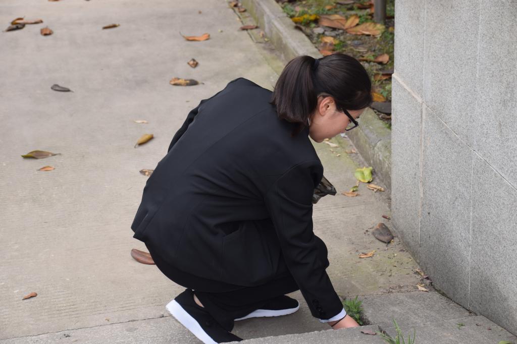 “今日神州看奋起,陵园千古慰忠魂。”——祭奠仪式结束后,同学们分散在陵园四处,主动地拾起垃圾,认真地清扫落叶,默默守护着这方净土的宁静。