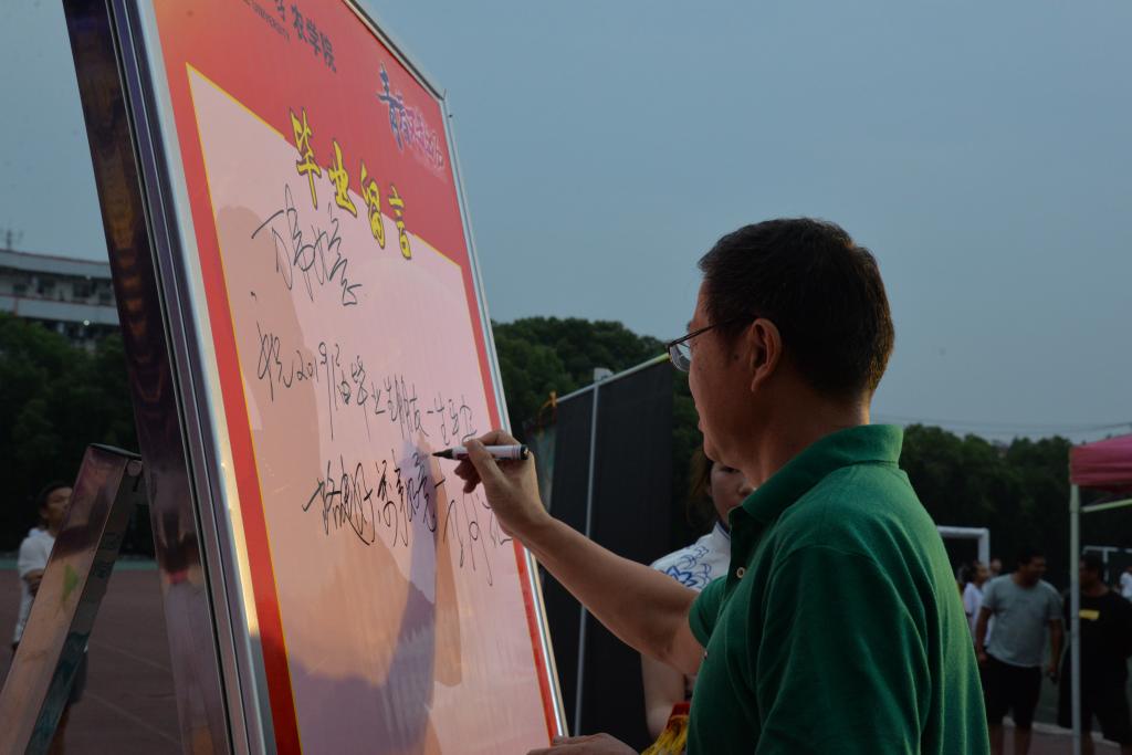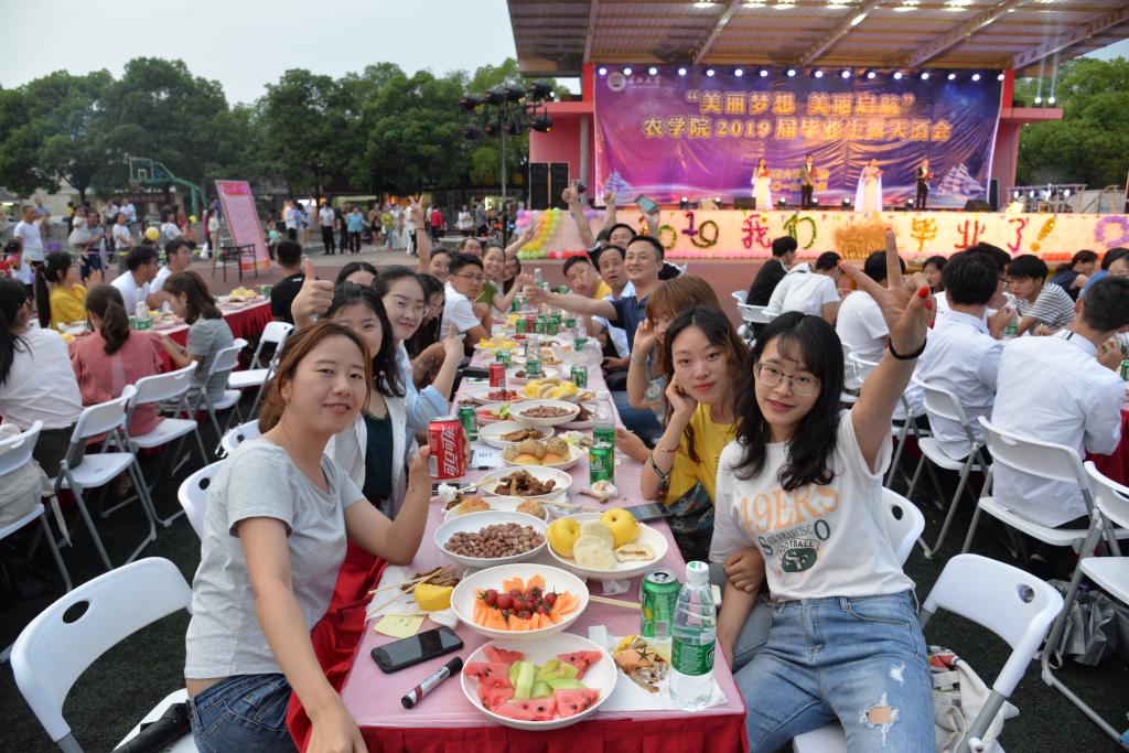 晚上七时许,餐会正式开始,学校相关职能部门负责人与正规滚球app平台官网老师们,一同为2019届毕业生送上真挚的祝福。“感恩的心•眷念的情”赠言签名活动中,老师和同学们纷纷走向台前,在留言板前长久驻足,提笔写下满腔深情;“梦想启航•助力放飞”环节里,500余个氢气球承载着师生们的梦想,飞向了遥远、蔚蓝的天际;香槟开启仪式上,师生们斟满祝福,为“长大长新、乡村振兴、国家复兴”共同举杯。