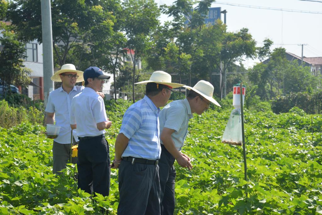 考察现场,我校朱建强教授团队骨干吴启侠博士分别对“麦-瓜-棉集成的秸秆还田技术、增施有机肥、肥料深施、薄膜覆盖加机械中耕物理除草、性诱剂诱杀、生物防治等化肥农药减施技术,对麦后直播棉集成的秸秆还田与化肥深施、抗虫短季棉直播、有机肥替代、鳞翅目害虫性信息素诱杀、生物防治等化肥农药减施技术”进行了详细介绍,其防治效果得到专家的一致好评。