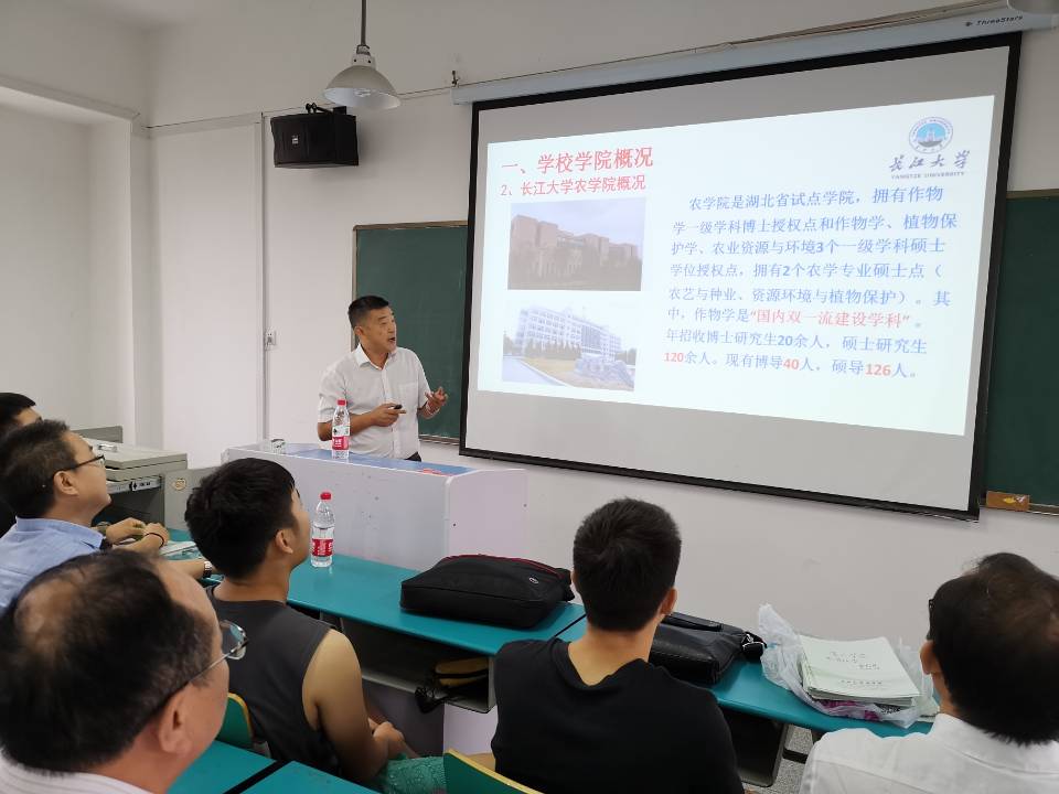 9月16日上午,宣讲团一行人首先来到湖北工程学院正规滚球app平台官网,在姜益泉院长的主持下,李传仁教授首先通过宣讲PPT,介绍滚球app官网基本情况、科研实力以及学科优势。紧接着,周建利教授阐述了滚球app官网农业资源与环境的专业特色以及招生情况。