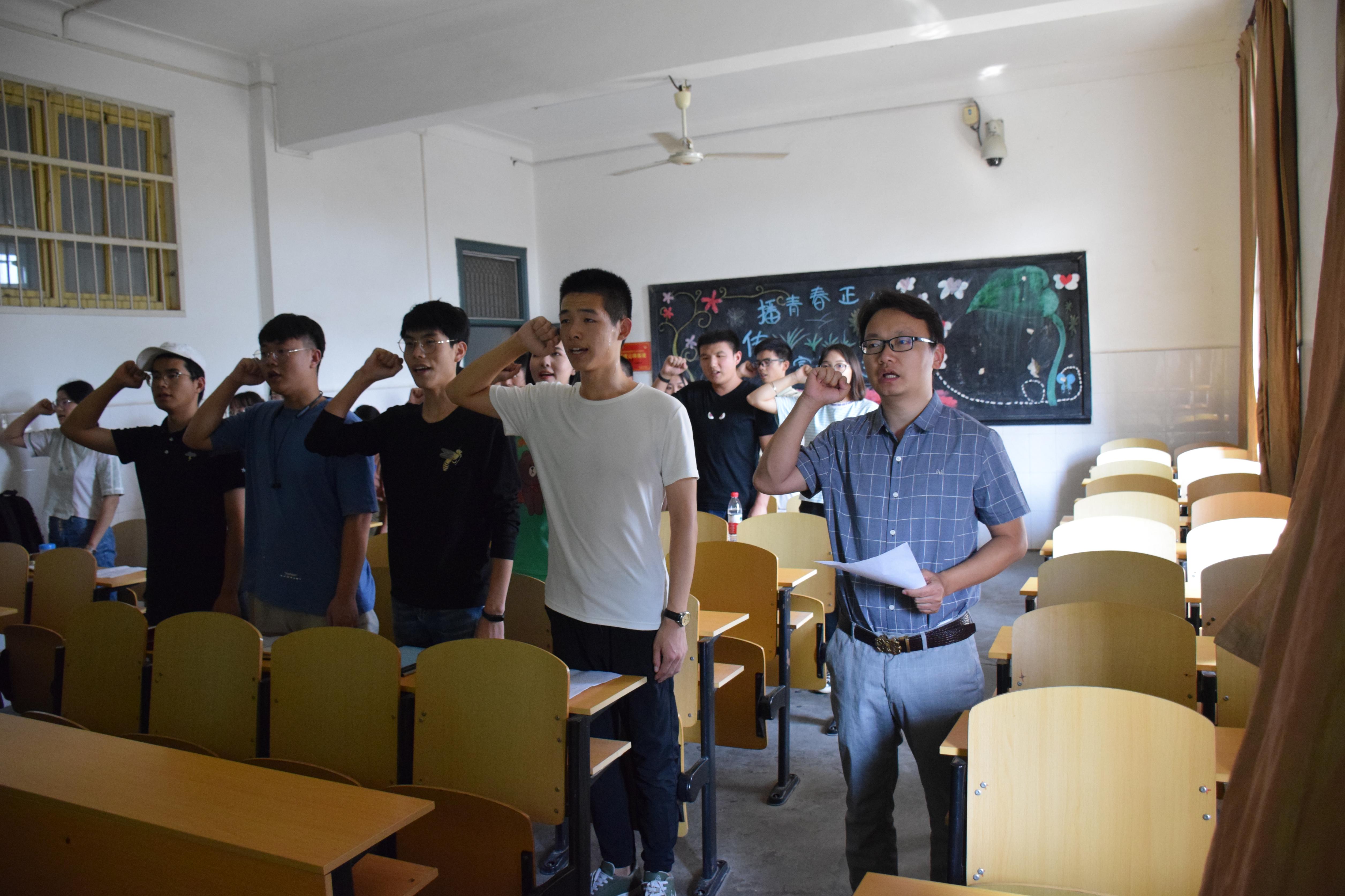 本次会议分为四项。首先,刘杨同志带领本科生党员和预备党员重温入党誓词。随后,全体同志在团委书记尹小华的带领下一起学习《朱业宏书记在“不忘初心、牢记使命”主题教育工作部署会上的讲话》和《关于开展“不忘初心、牢记使命”主题教育实施方案》两份文件内容。因正值新中国成立70周年来临之际,在文件学习之后,各位同志以“青春告白祖国”为主题展开讨论,讨论十分激烈,李凤仪、杨彪鼎、王泠菲等同志都表达了自己对祖国的赞颂与热爱,李凤仪表示:“作为青年一代的我们要牢记先辈们的奉献,珍惜现在的美好生活,为建设繁荣富强的中国而努力学习。”