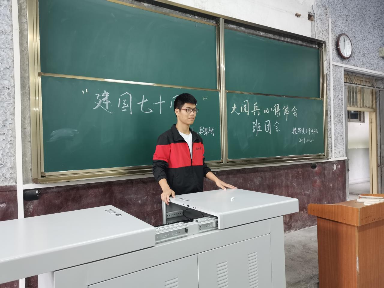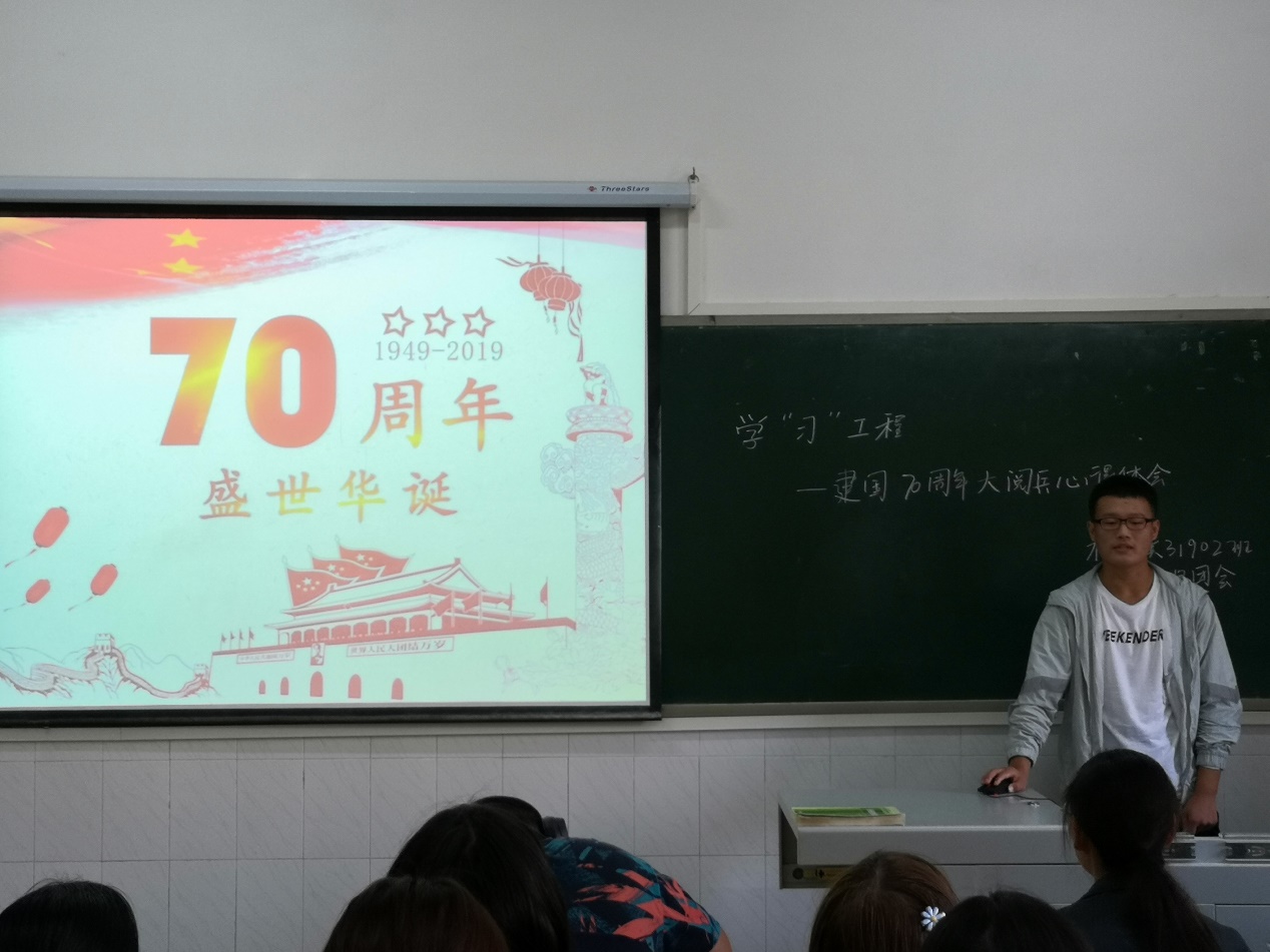 植物类31903班团支部在10月10日下午14:00于3教T2开展主题团会,在团支书姜锦桥的引导下,同学们了解了新中国70年来发生的翻天覆地的变化以及获得的巨大成就,明白了习近平总书记对农学的重视,也感受到了阅兵仪式的震撼和隆重。