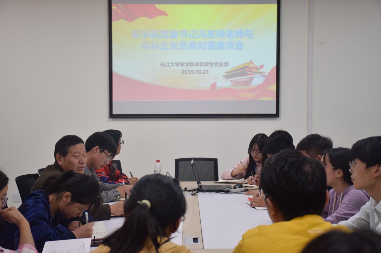 新闻网讯(学生记者 吴畅)10月21日晚19:00,滚球app官网党委书记冯发明在农科大楼3071与本科学生党支部全体党员及预备党员开展“不忘初心、牢记使命”主题教育调查研究座谈会。会议由兼职辅导员施秀飞主持。