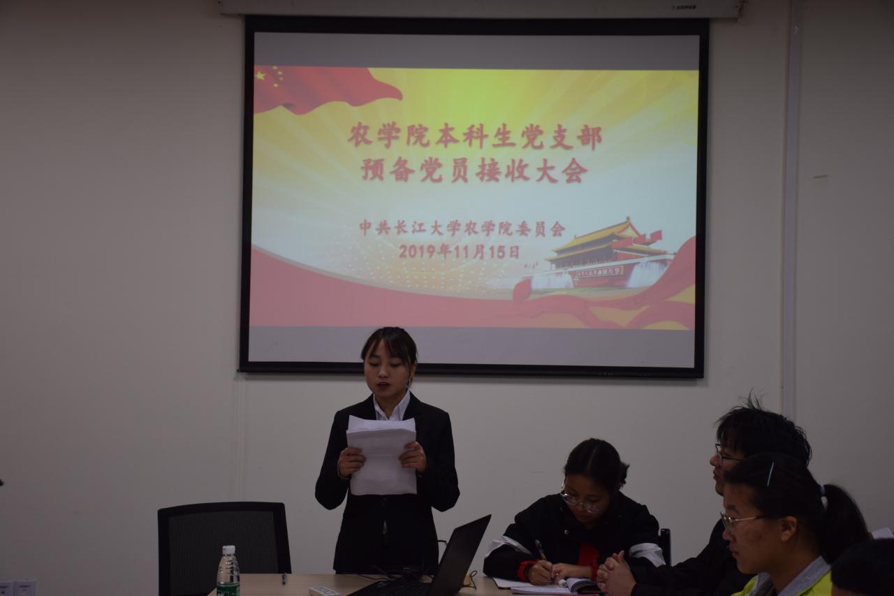 11月15日下午17:30,滚球app官网本科生党支部预备党员接收大会在农科大楼3071召开,组织员王金琼、党委副书记谭亮魁、党支部书记尹小华、本科生党支部正式党员、预备党员及发展对象参与此次会议。