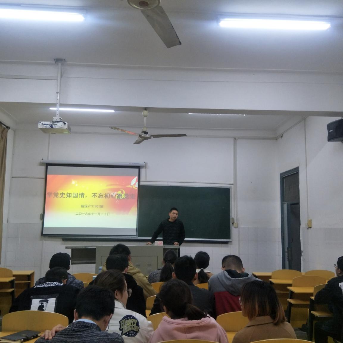 11月19日,植保产31701班团会于2教107开展,团支部副书记毛国庆带领同学们学习学校下发的资料,了解中国共产党的发展历程以及共产党在我国的历史地位。会上,他强调:“我们需要提高对党的认识,深入地学习党的精神纲领,时刻牢记自己是新时代大学生的身份,努力学习,时刻准备着为共产主义事业而奋斗。”