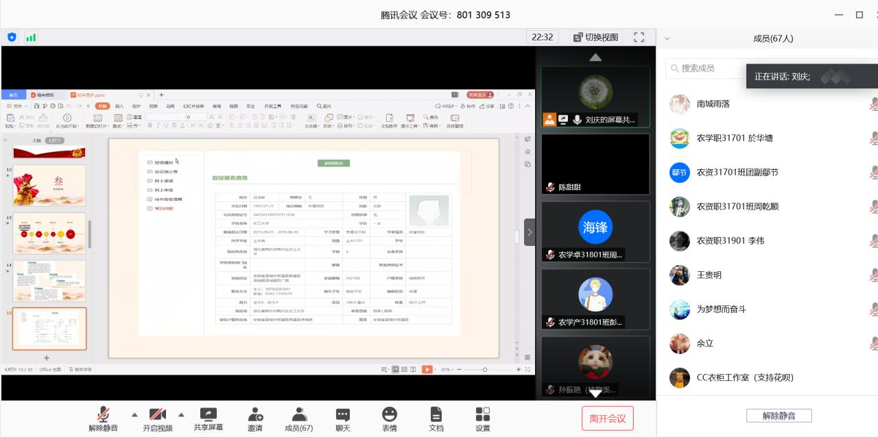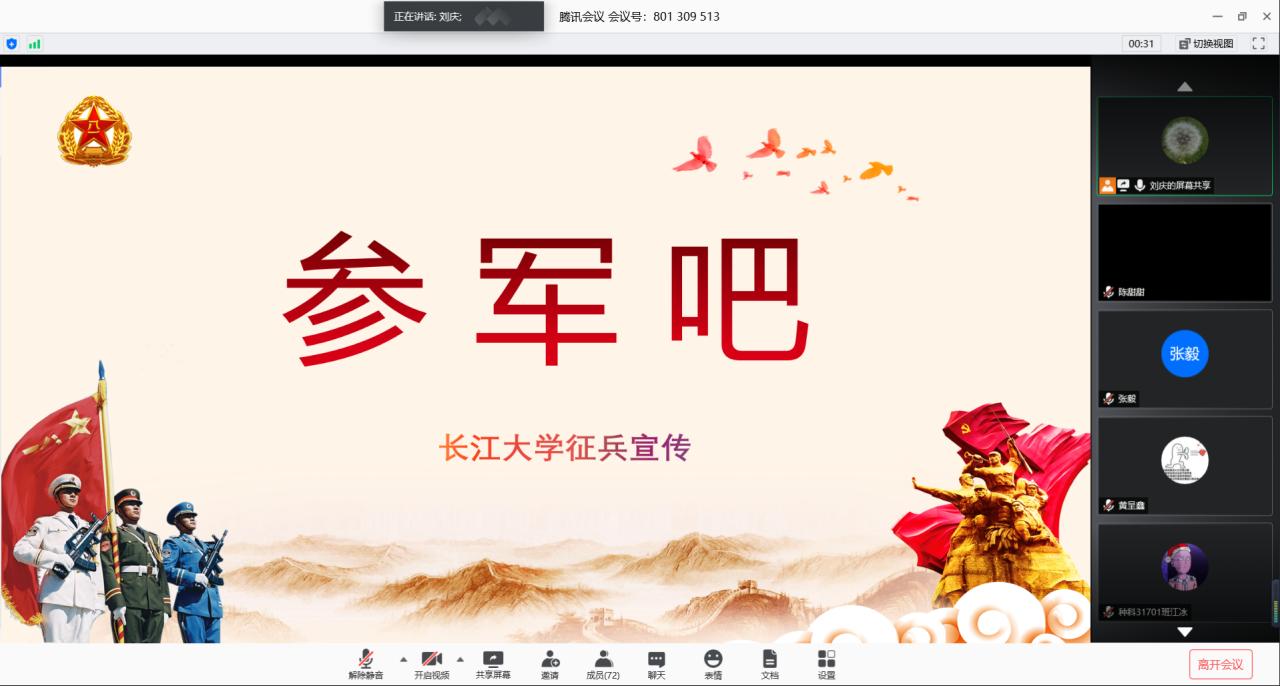 通讯社讯(学生记者 张毅)为进一步推进滚球app官网学生征兵政策宣传工作,帮助学生了解、掌握应征入伍相关政策和流程,5月29日19:00,滚球app官网通过“腾讯会议”平台开展了线上征兵政策宣讲活动。此次宣讲会由学工办主任刘庆主讲,本科班各班长、团副、今年报名应征和有入伍意愿的学生共同参与了此次宣讲会。