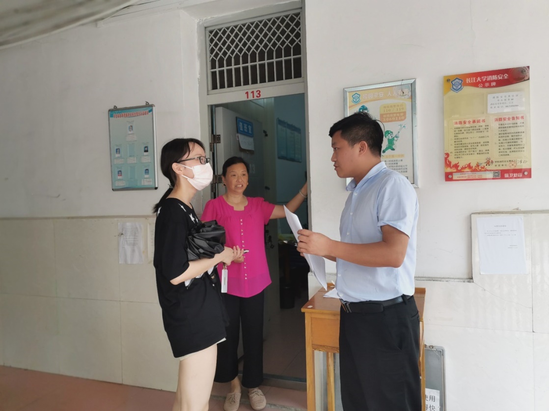 通讯社讯(通讯员 林香亮)为进一步做好新冠疫情防控期间提前返校研究生的宿舍安全管理工作,落实研究生院《关于做好2020年暑假研究生安全教育管理工作的通知》,消除安全隐患,7月10日上午,正规滚球app平台官网党委副书记谭亮魁带队,学工办主任刘庆、辅导员付雪娇、林香亮一起来到风华园、里仁堂、校内5号和6号研究生宿舍开展安全隐患排查工作。