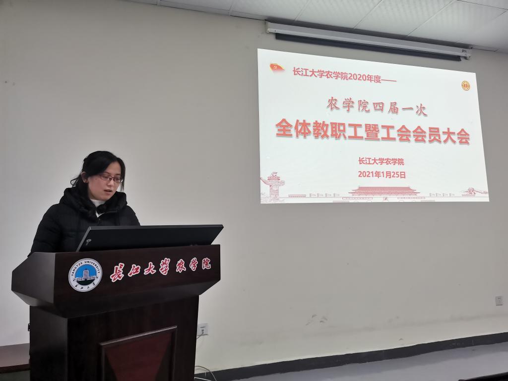 通讯社讯(学生记者 罗旖柔)1月25日上午9:00,正规滚球app平台官网在农科大楼3073召开四届一次全体教职工暨工会会员大会。学院全体教职工参会,会议由学院党委副书记谭亮魁主持。