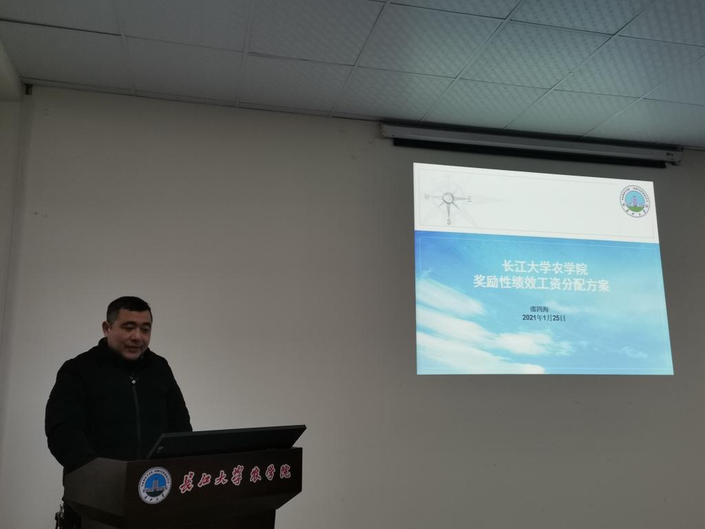 行政副院长邵四海做《正规滚球app平台官网2020年财务工作报告》、《正规滚球app平台官网2020年教职工绩效奖励分配方案》。