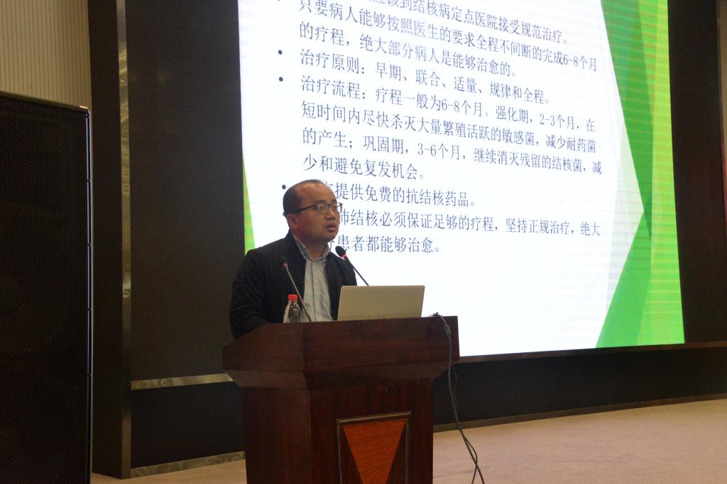 讲座伊始,苏晓云老师向同学们介绍了杨尚鹏主任和张冬副主任,并邀请杨尚鹏主任为我们讲解结核病的防治。杨尚鹏主任为同学们详细地介绍了结核病的的传染性及其危害性,并提出了防治结核病的方法,同时强调同学们要注意个人卫生,一旦确诊肺结核,要积极配合医生进行隔离治疗。