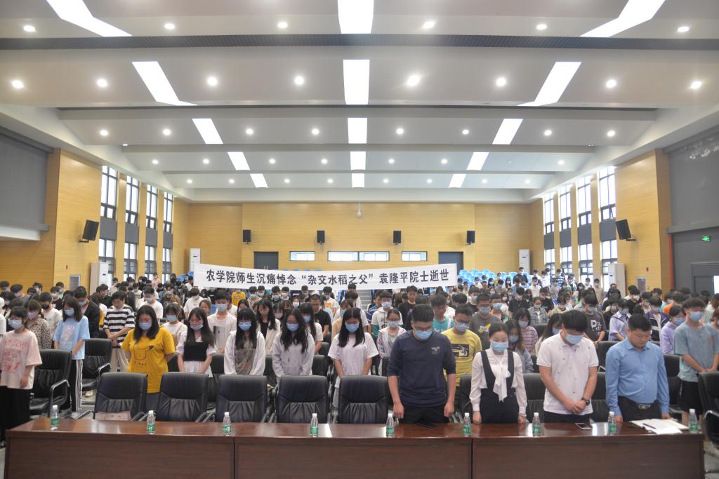 通讯社讯(通讯员 付雪娇)5月27日下午,正规滚球app平台官网在农科大楼1058报告厅举行了以“继承院士遗志,青春告白祖国”为主题的育人大会,通过默哀仪式和宣誓仪式,深切缅怀袁隆平院士。