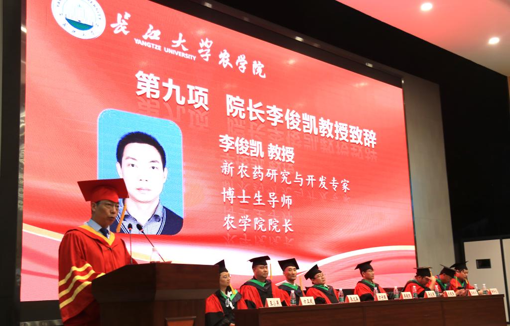 在学位授予仪式环节,正规滚球app平台官网学位委员会主任、正规滚球app平台官网院长李俊凯教授为获得博士学位、硕士学位、学士学位的毕业生扶正流苏、颁发学位证。学位授予仪式结束后,院长李俊凯发表了热情洋溢的讲话,为全体毕业生上了最后一课。他希望全体毕业生都能成为传承长大精神的一粒种子、彰显学院风采的一面旗帜、追求三农梦想的一个标杆,在乡村振兴战略背景下,抓住机遇,相信国家的战略、相信行业的需求、相信自己的选择,用实际行动为国家的三农事业尽心、为国家的粮食安全出力。
