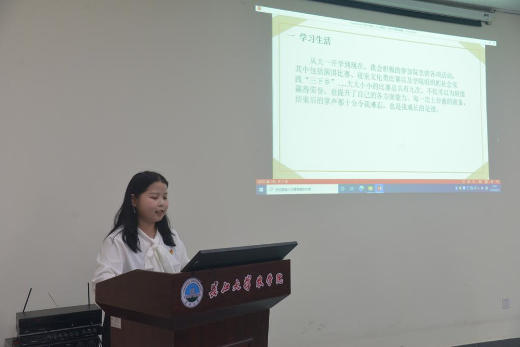 本次答辩主要包含个人陈述和现场提问两个环节。在经过抽签排序后,答辩正式开始,整个答辩现场秩序井然,庄重而温馨。每位答辩选手都详细介绍了各自所担任的职务和获得过的奖项,并列举了自己在学术科研、文体艺术、志愿公益、学生服务、实践实习、就业创业等方面获得的成就,准确清晰地阐述了自己申报“十佳兴农青年”的理由与条件。选手们所表达出的学习态度、政治思想都积极向上。比如,农资卓31901班李炫表示“生活再平凡也是限量版,别轻看自己”,“农学人说学农路正长,行者方知远,我将继续在学农兴农的路上奉献自己,书写自己的文章”,农学产31901班唐海洋在答辩中也如是说到。