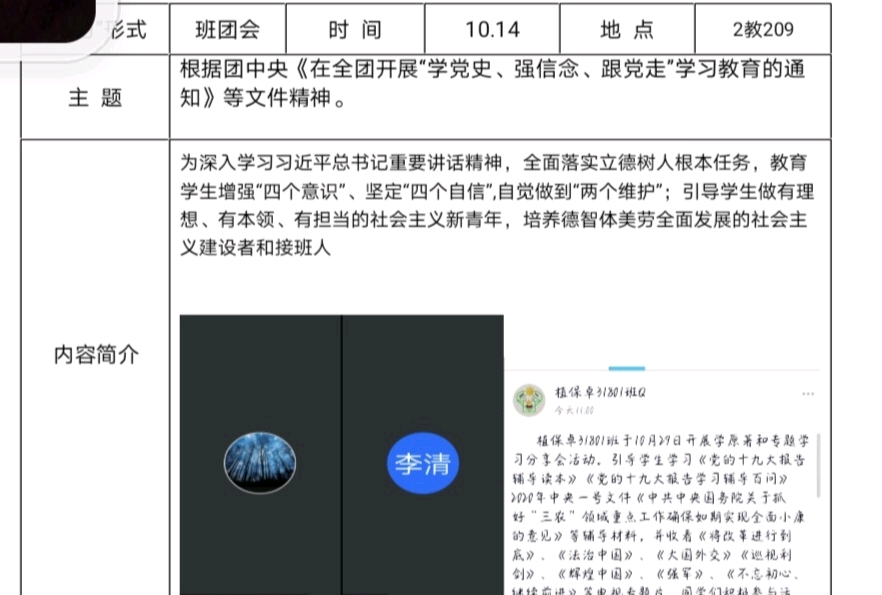 其中,植保卓31801班班长告知大家要加强学习小组组织建设,规范学习制度,及时更新学习小组成员、明确职责、制定计划、评比学习,做到实事求是,实时更新为大家服务。班团记录表要实时记录。建立的学习小组要通过“学、思、传、行”,开展形式多样的学习,组织师生在自学的基础上开展集中研讨、交流心得、分享感悟、社会实践、志愿服务等,促进学生将理论学习内化于心、外化于行、向实践转化、向社会辐射,丰富学习工程的内涵,确保学习收到实效。