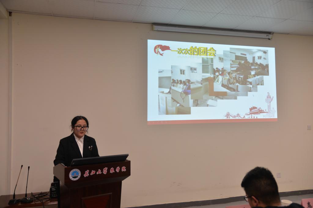 活动伊始,青马小组全体成员以小组为单位开展答辩活动。各小组成员依次上台,围绕自我论文展开陈述,从加入青马班后思想上有信仰、学习上有进步、能力上有提升、同学中有威信等方面多角度解读论文的内涵。学员们积极展现青春激昂的风采,在青马班的经历让他们不断充实自我,绽放自信的光芒。学员答辩完毕后,候聪老师对同学们能取得如此巨大的进步表示赞扬,并不断鼓励同学们在结业后继续贯彻优良学风,不断砥砺自我,坚定理想信念,提升自我能力,成就更好的自己。