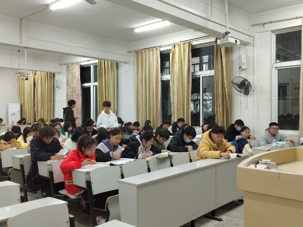 如今,学期已经过去一大半,大一新生即将面对自己进入大学的第一次期末考试,还有英语四级考试,大家在早晚自习上没有丝毫松懈,而是抓紧一分一秒,在做着自己的事情,积极复习备考,同学们都专心致志,有的在读背英语单词,有的在做着数学化学作业,都全身心的投入到学习中去。