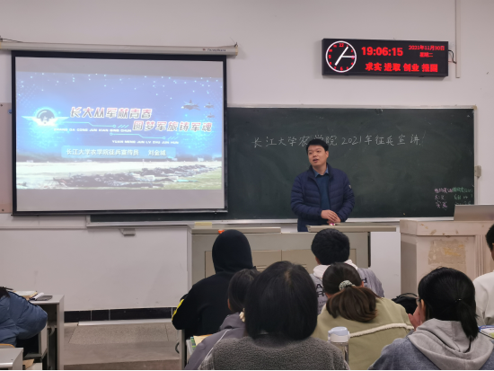 刘庆老师介绍了本次征兵的主要日程安排、进站体检的相关待遇以及入伍的优待政策,他号召同学们积极响应国家政策,投身国防事业。