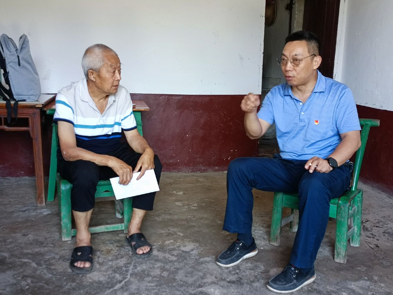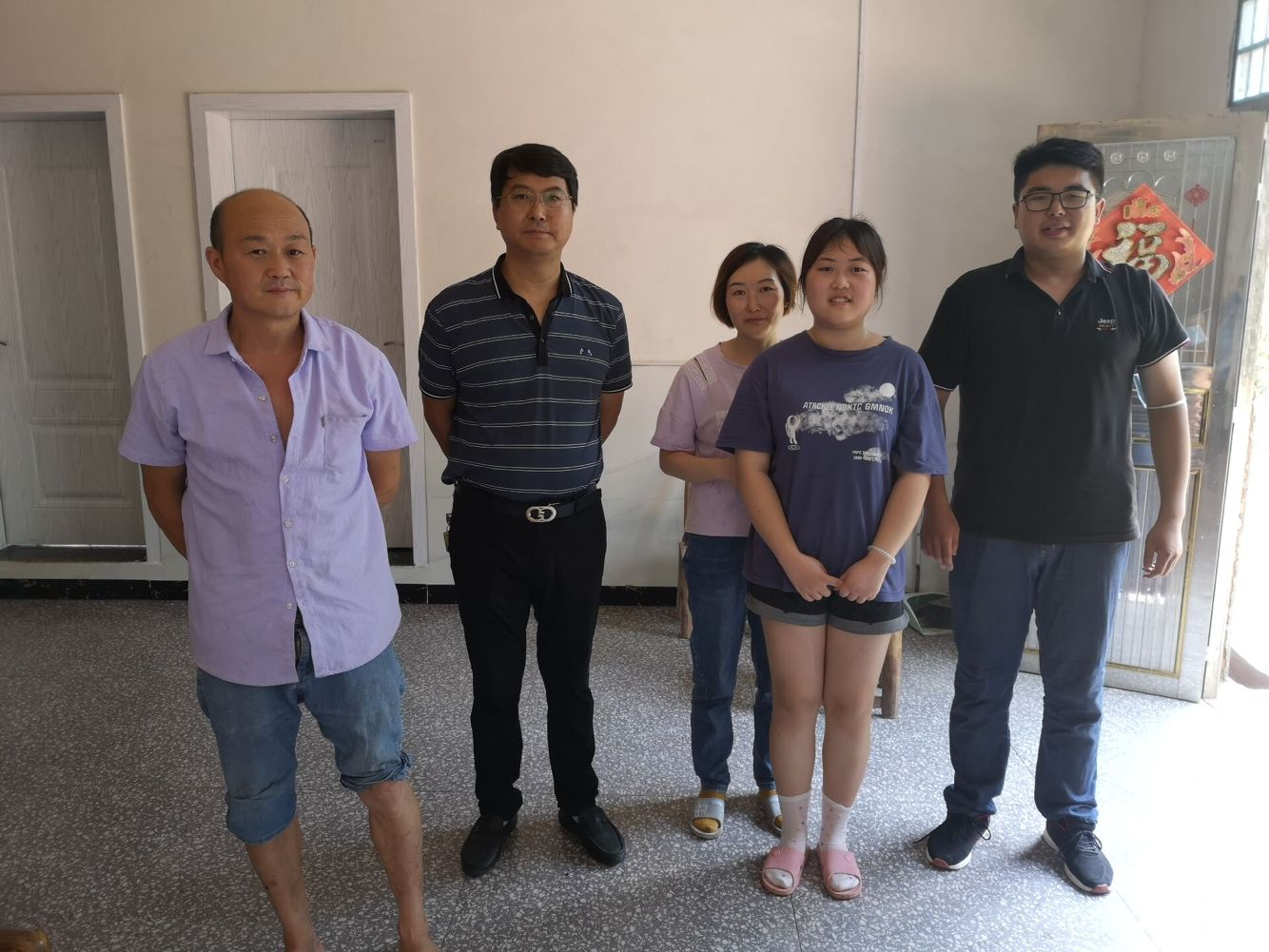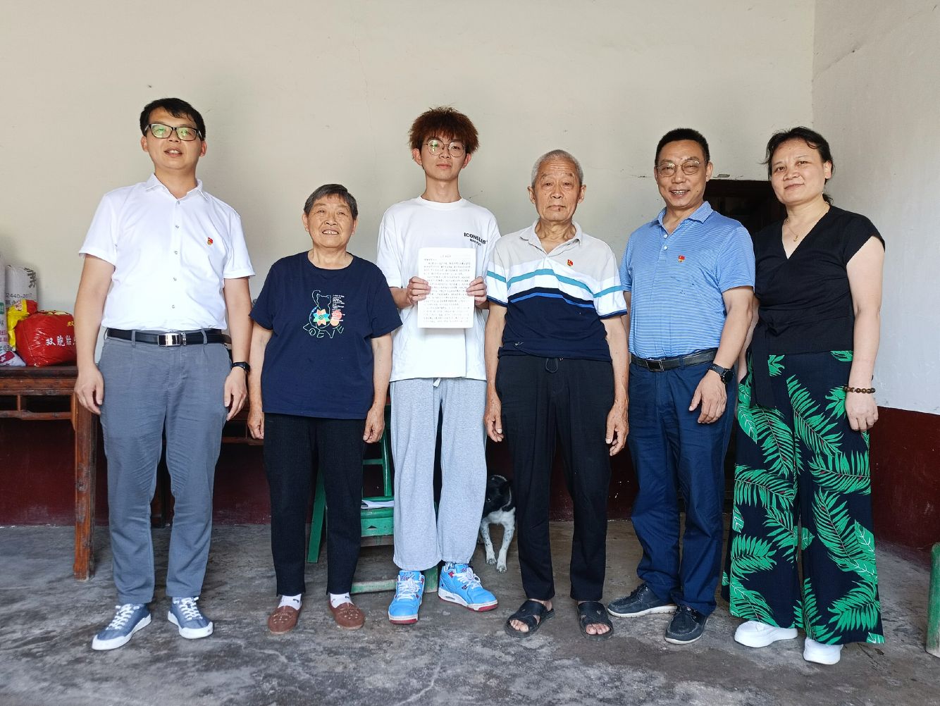 顶着烈日和暴晒,走访团队沿着蜿蜒的山路,几经周折,辗转来到学生家里。他们通过实地察看、与学生家长倾心交谈,深入了解贫困生的家庭经济状况和家庭成员的生活工作情况,耐心细致地宣传、介绍国家和学校的各项资助政策,同时,还反馈了学生在校的学习、生活状况。针对学生家长和孩子们的困惑,带队领导一一进行了解答,并鼓励学生要勇于克服困难,努力学习专业知识,以优异的成绩回报家庭、学校和社会。院长李俊凯一行带去了学生的在校成绩单和入党申请书,让学生的老党员爷爷倍感欣慰,同时李院长还为学生家庭送去了自己准备的慰问金。学生家长对老师们的到来表示感谢,对学校一直以来所给予的帮助和关爱表达了诚挚的谢意。