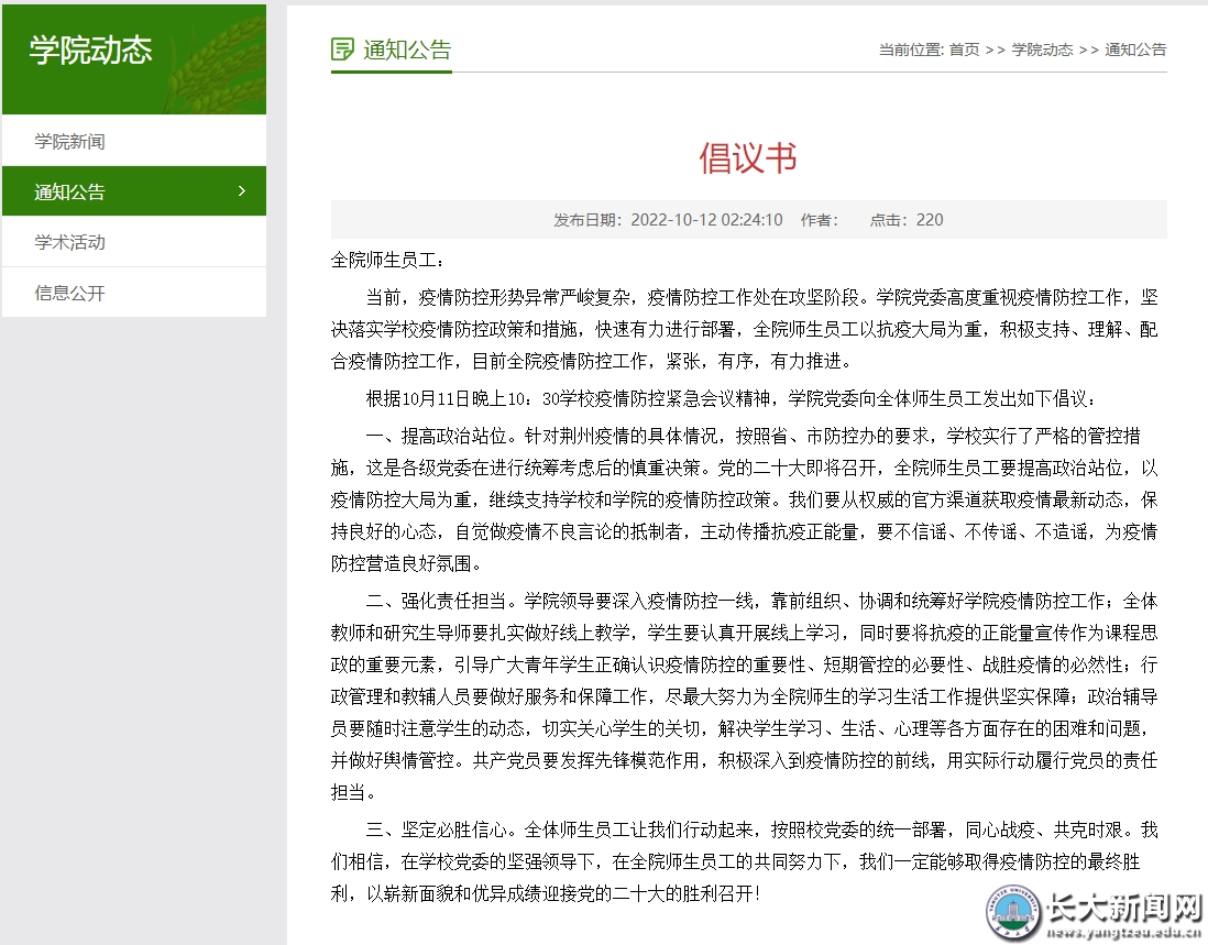 学院全体党员干部统一思想认识,提高政治站位,第一时间组织成立了疫情防控工作领导小组,强化责任落实。10月5日至今,学院党委多次召开疫情防控工作部署会,研讨学院疫情防控工作,落实落细学生信息排查、核酸检测、日常打卡、重点人员管控等举措。10月12日凌晨,学院党委发出倡议书,号召全院师生积极支持、参与学院和学校疫情防控工作,学院6名教师志愿者和2名辅导员迅速响应号召,积极参与到东校区学生6500份盒饭保供分装和32000份爱心大礼包分拣打包任务中。