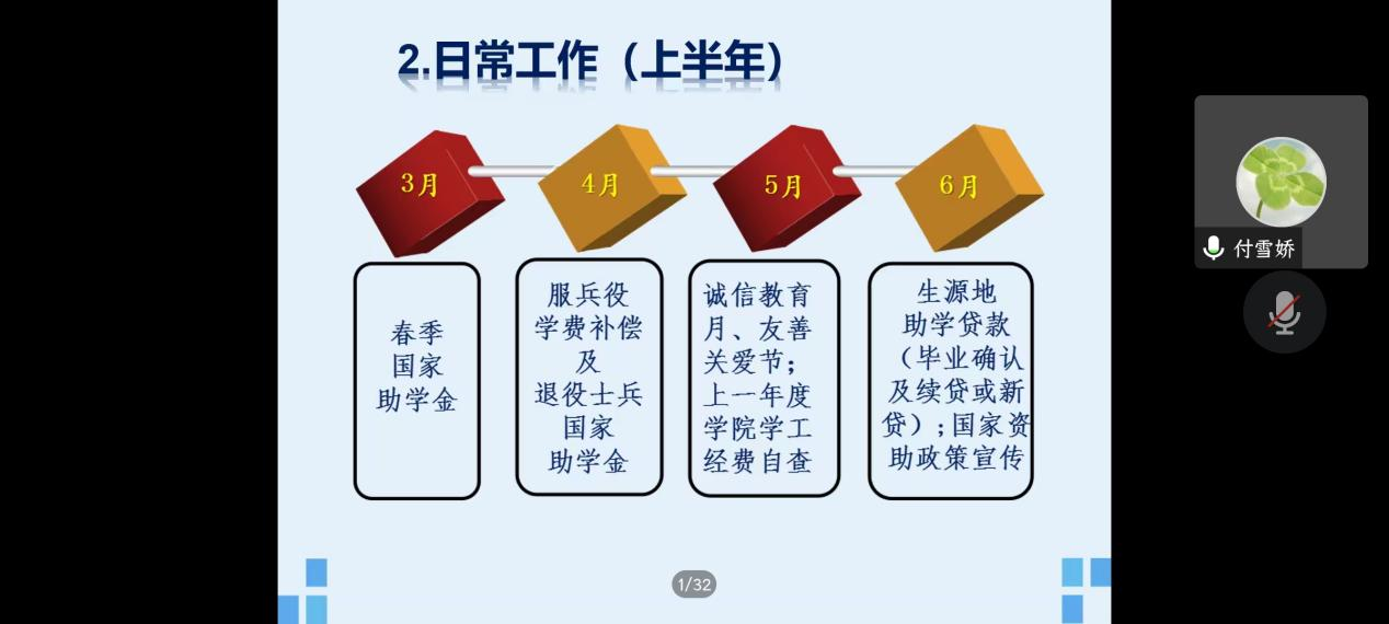(通讯员 曾恺怡)为完善覆盖全学段学生资助体系,提高精准资助育人效果,滚球app官网于6月9日12:00在腾讯会议开展线上资助培训。本次会议由辅导员付雪娇老师主持,正规滚球app平台官网20级全体本科生参加会议。