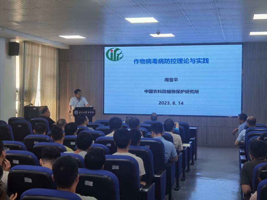 8月14日,中国农业科学院植物保护研究所原所长、国家级人才计划入选者、植物病虫害生物学国家重点实验室主任周雪平研究员来校讲学和指导工作。
