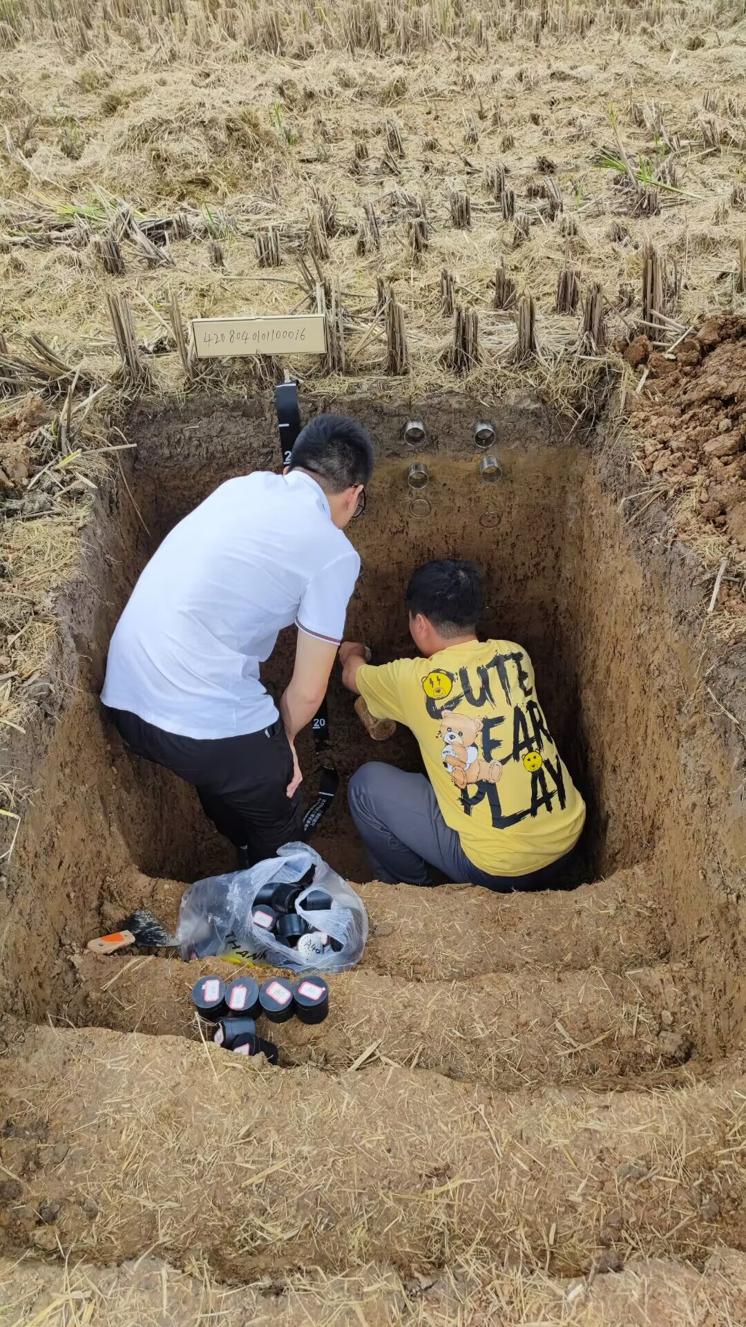 (通讯员 李继福)坐标某位点,一块已完成水稻收获的水田,位于掇刀区团林铺镇鸦铺村,是掇刀区第三次土壤普查第一个土壤剖面采集点,也是荆门市首个土壤剖面采集点。经过前期室内校核和野外勘察,9月28日,正规滚球app平台官网外业调查与采样队顺利完成第一个土壤剖面样品的调查采集工作。