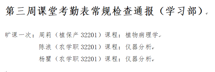 为端正学风、严肃校纪校规,现对全体学生课堂考勤常规检查给予通报。