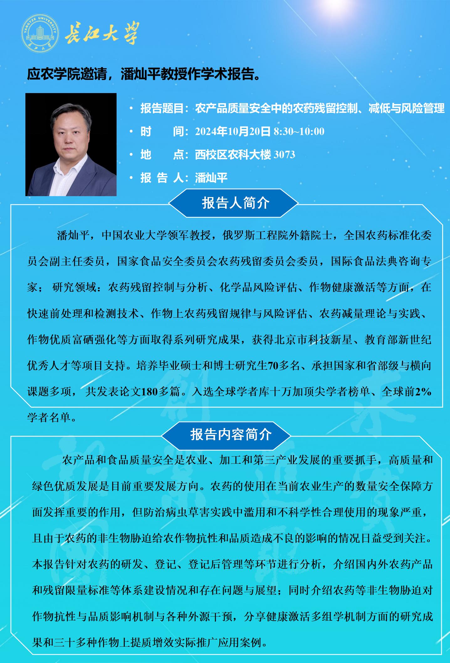 正规滚球app平台官网2024年学术报告(十九):农产品质量安全中的农药残留控制、减低与风险管理