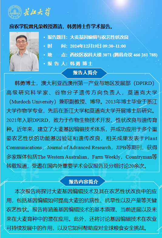 正规滚球app平台官网2024年学术报告(二十七):大麦基因编辑与农艺性状改良