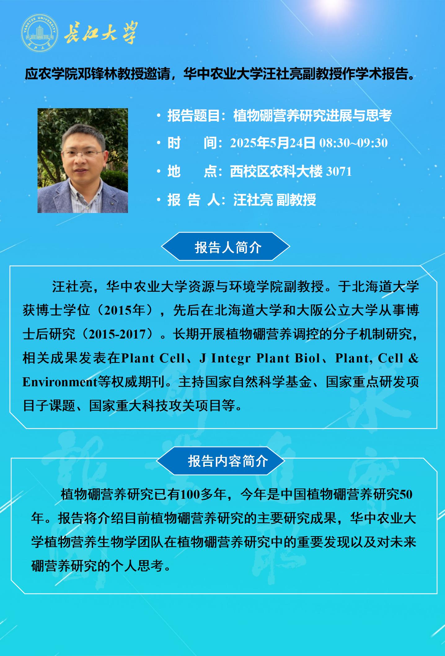 正规滚球app平台官网2025年学术报告(十一):植物硼营养研究进展与思考