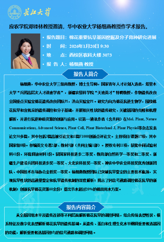 正规滚球app平台官网2026年学术报告(一):棉花重要抗旱基因挖掘及分子育种研究进展