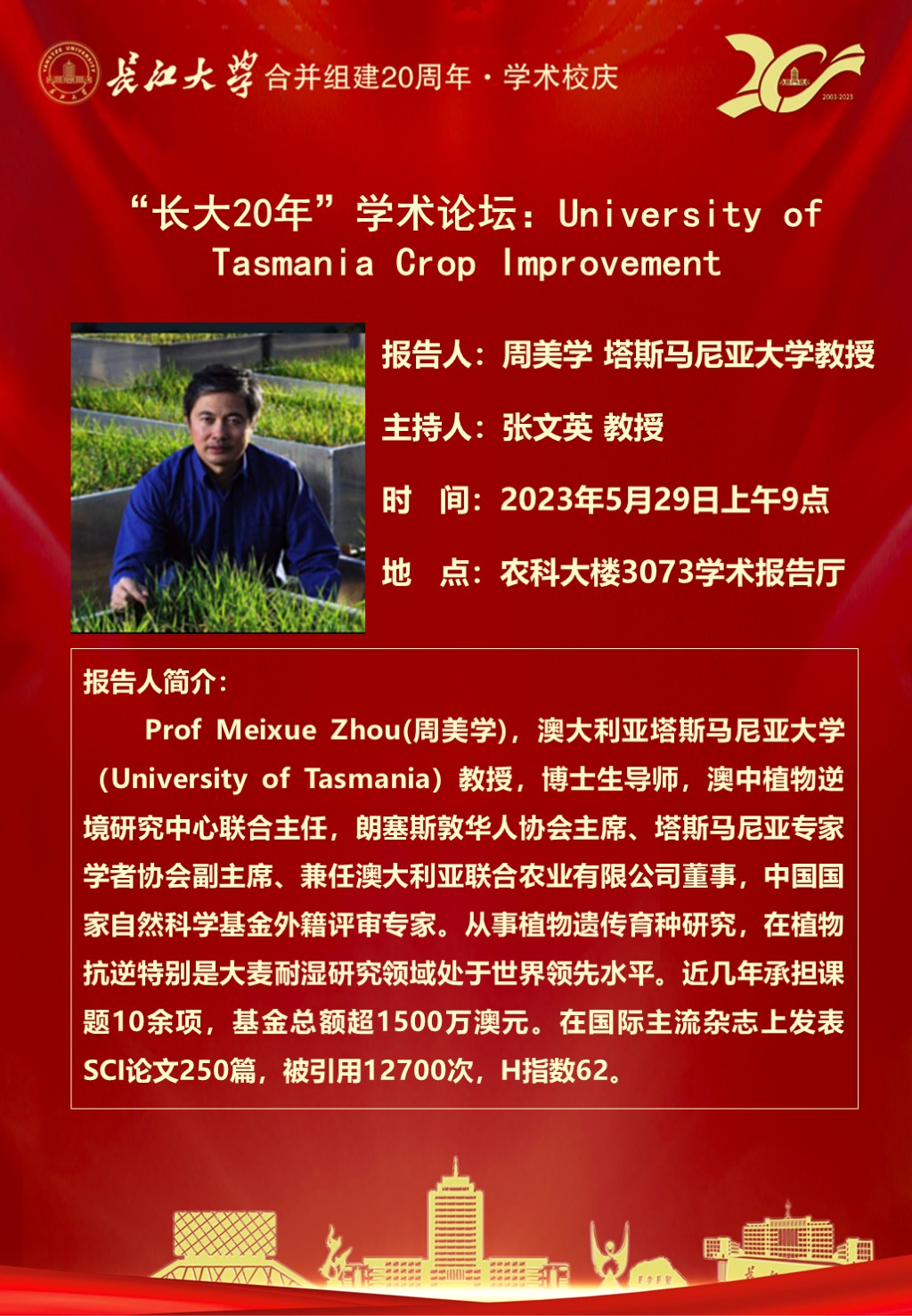 “长大20年”学术论坛暨正规滚球app平台官网学术讲坛:University of Tasmania Crop Improvement