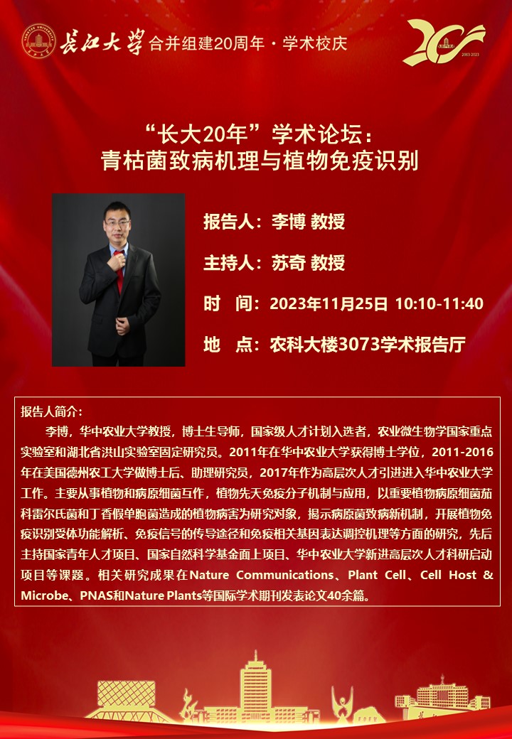 “长大20年”学术论坛暨正规滚球app平台官网学术讲坛:青枯菌致病机理与植物免疫识别