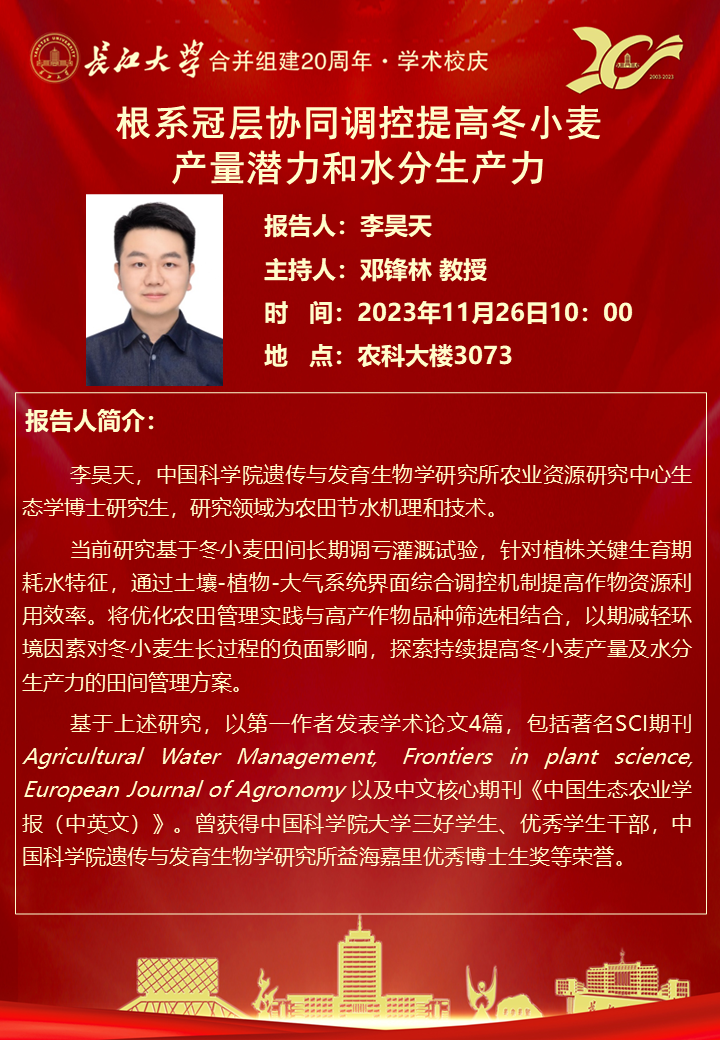 上一篇: “长大20年”学术论坛暨正规滚球app平台官网学术讲坛:线粒体靶向农药创制——理论与实践