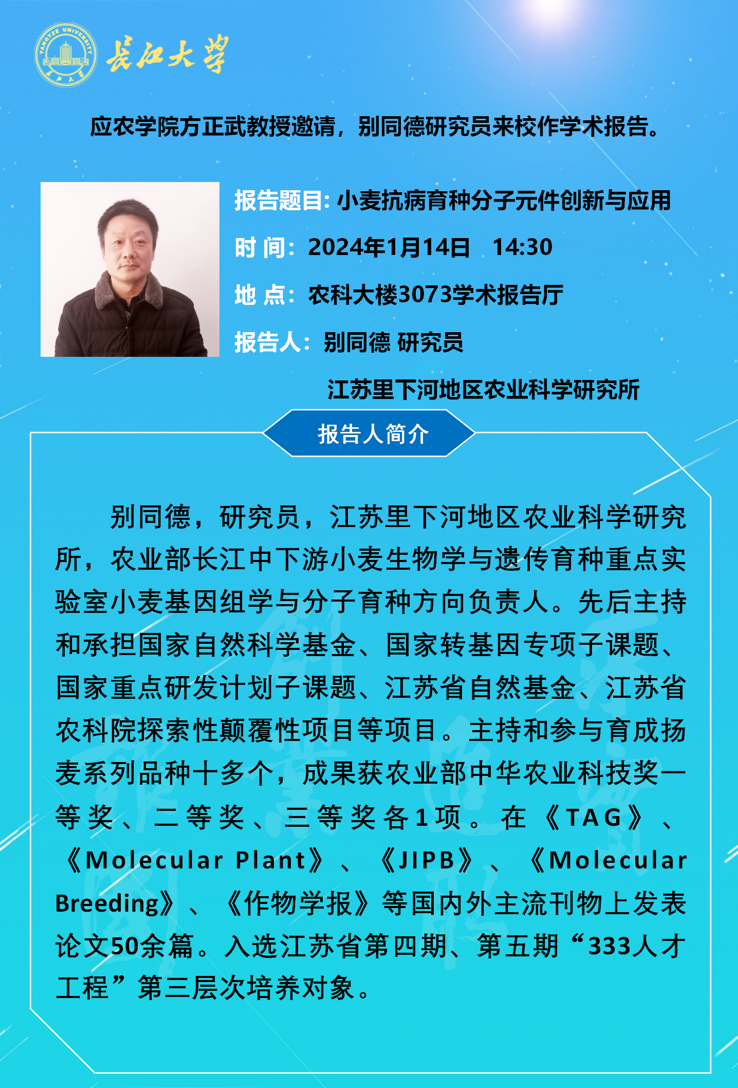 上一篇: 正规滚球app平台官网2024年学术报告(六):小麦抗赤霉病育种实践与思考