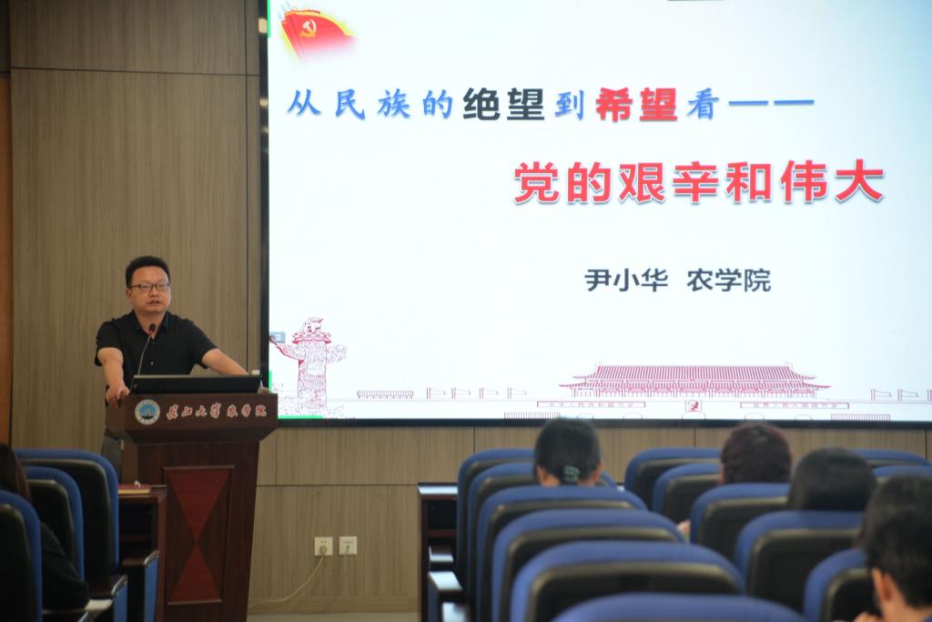 党委副书记尹小华进行了以《从党史的角度看党的伟大》为题的授课。回望“乱世英雄起四方,有枪就是草头王”的民国时期,尹书记教诲学员们要珍惜来之不易的和平生活;回望中共抗战、中国抗日胜利的艰辛历程,尹书记教诲学员们要继承热忱的爱国之情。他通过对比国民党与共产党面对严峻的国情做出的不同选择,印证了“中国共产党的领导是历史的选择、是人民的选择”这一结论。授课结束后,他激励学员们要做敢于担当、勇于奋斗、勤于实践、苦于锤炼的青年,坚定信念,不忘初心,端正入党动机,为强国建设、民族复兴贡献自己的绵薄之力。