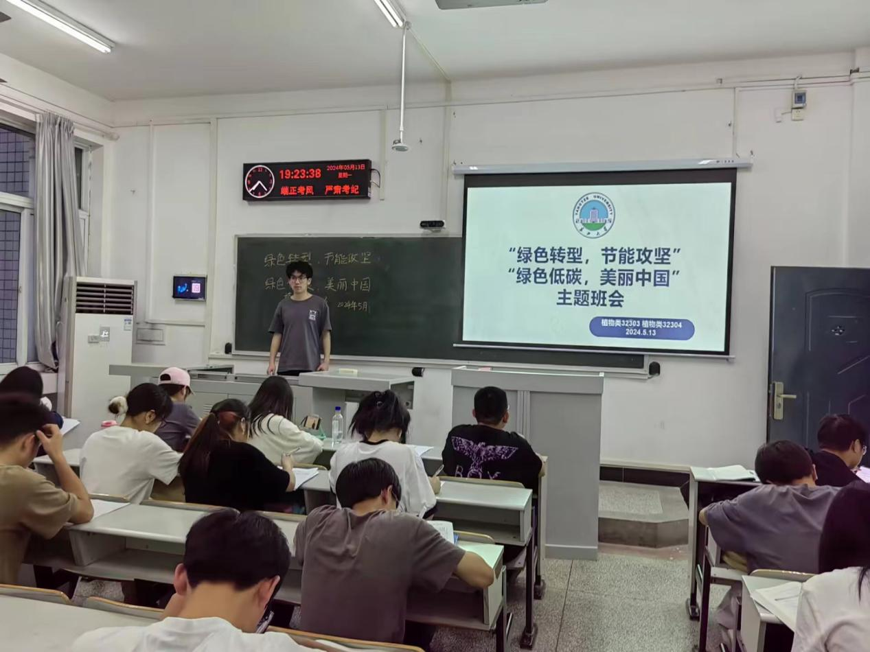 此次活动中学院全体本科生班级召开“绿色转型,节能攻坚”、“绿色低碳,美丽中国”主题班会并通过PPT讲授讲解、案例讨论以及分组交流等形式开展。班会上,班主任和辅导员老师精心准备,向大家介绍习近平总书记关于碳达峰碳中和工作的重要论述,耐心讲解我国“双碳”工作的全过程以及告知大家实现“双碳”对国家、社会和个人的要求。同学们认真学习,积极参与讨论,踊跃分享自己在日常生活和学习中为实现“双碳”做出的贡献,班会气氛活跃。