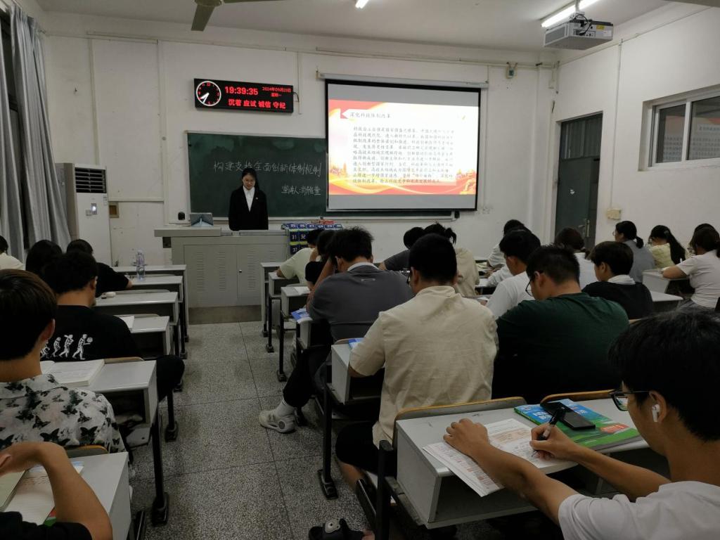 宣讲于九月二十三日晚七点在七教新生自习教室正式开展。正规滚球app平台官网第四期青马学习小组成员选取了党的二十届三中全会内容的不同主题进行筹备,其内容涵盖了教育现代化、城乡统筹发展、文化自信、生态文明和坚持党的领导五个方面,充分引领同学们学习党的二十届三中全会的精神内涵,切实增强农院学子的“四个自信”,引导大家热爱拥护中国共产党,立志听党话、跟党走,立志扎根人民,奉献国家。