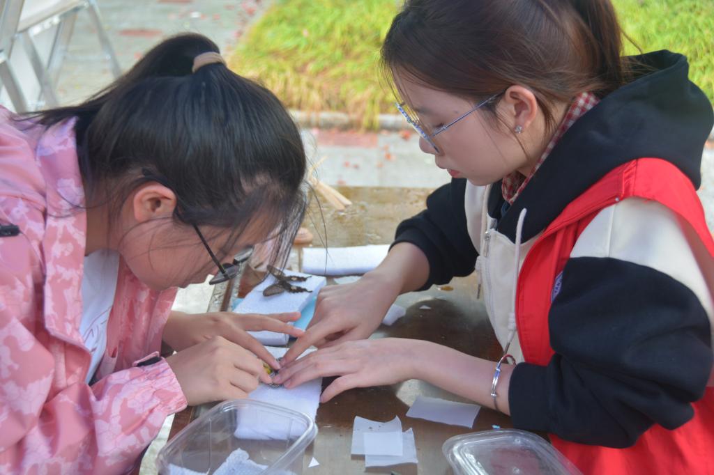 在标本展现场,正规滚球app平台官网的学生志愿者们为参观者提供了详细的标本科普讲解。他们不仅介绍了各种昆虫的形态特征、生活习性和生态环境,还亲自示范了现场标本制作的过程。参观者们通过近距离观察和实践,深入了解了昆虫世界的奥秘,感受到了大自然的神奇魅力。有的同学表示,这次标本展让他们对昆虫有了更深入的认识和了解,也增强了对自然生态的保护意识。