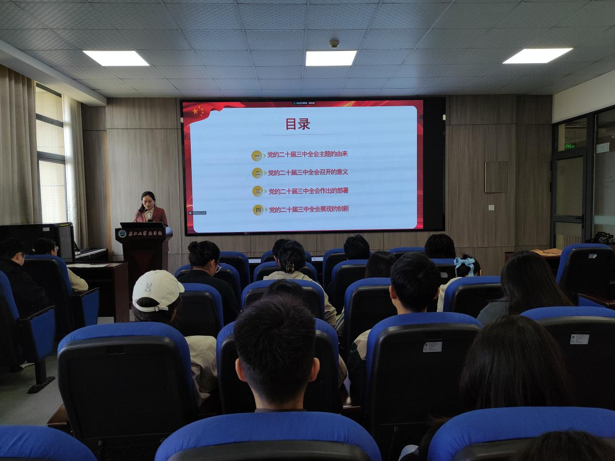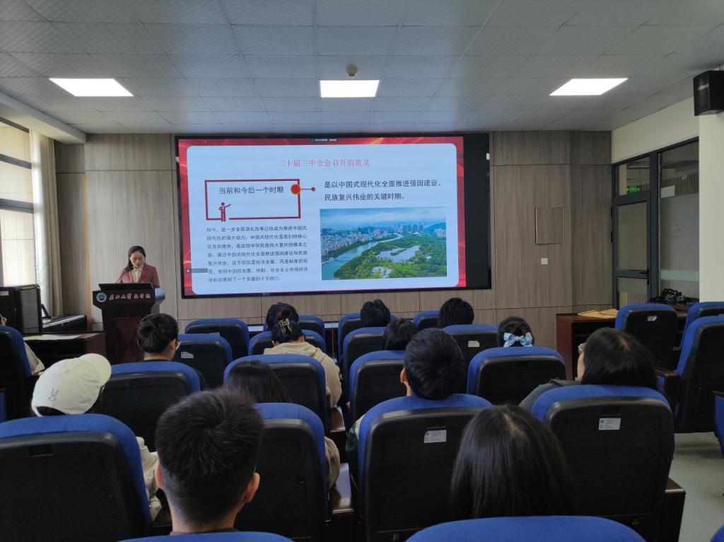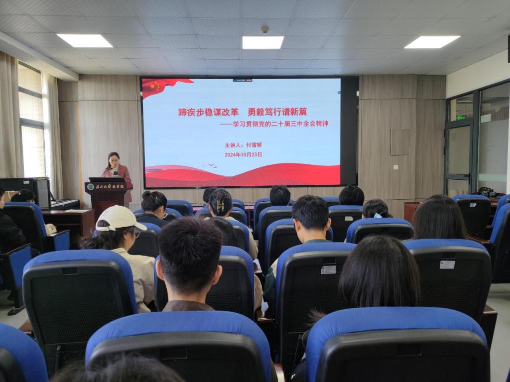 (通讯员 任娇 宋梦圆)为深入学习贯彻党的二十届三中全会精神,引导广大青年深刻领会全会精神,激发他们的责任感与使命感。10月23日,正规滚球app平台官网团委书记付雪娇在农科大楼3073会议室以“蹄疾步稳谋改革 勇毅笃行谱新篇”为题为80余名党员、积极分子上了一堂精彩的思政课。
