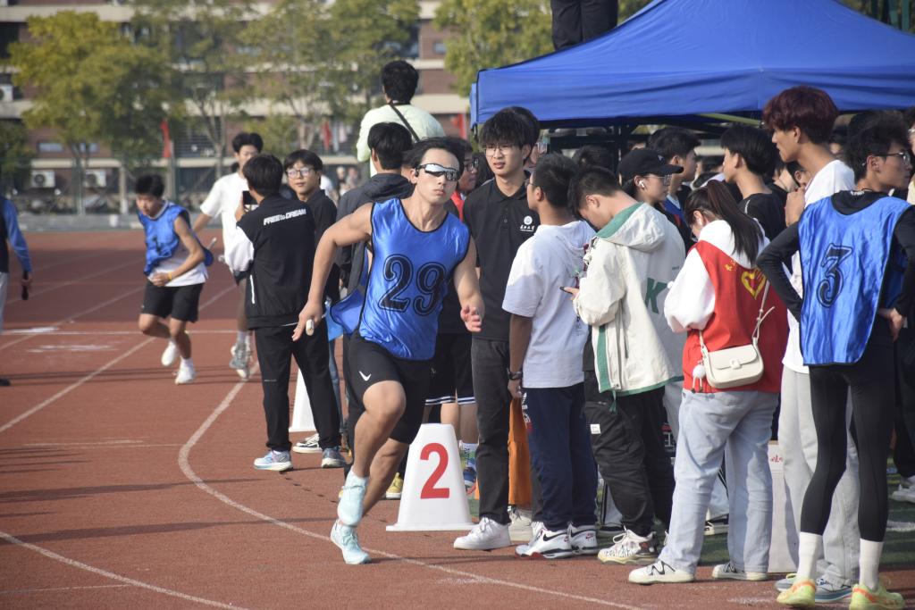 蒋云霖同学在男子200米和男子400米项目中均获得第七名。比赛枪声霍然而起,蒋云霖同学如离弦之箭,矫若游龙,在跑道上挥洒汗水,向着终点不懈追逐。他那灵动的步伐、矫健的身姿,尽显速度与力量的完美交融,赢得在场观众的阵阵喝彩,他昂首挺胸,眼神坚毅,彰显了青春饱满的体魄和永不言弃的赛场精神。