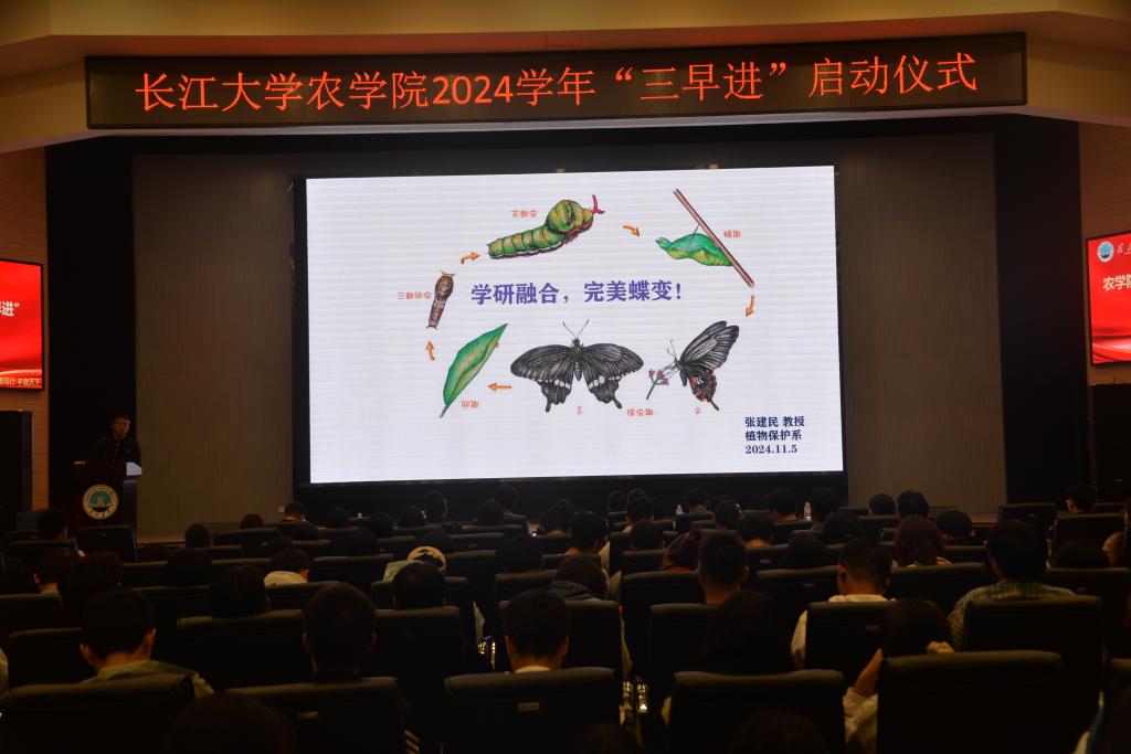 (见习记者 吴泓萱 邬道瑾/文 严树彬 向建华/摄)为了促进学生厚植学农爱农情怀,坚定强农兴农的时代使命,将科研实践与理论实践结合起来,滚球app官网于11月5日19:00在农科大楼1058会议室举行正规滚球app平台官网2024年“三早进”启动仪式。仪式由党委副书记尹小华主持,院长助理邓建新教授、植保系张建民教授、分团委书记付雪娇、24级辅导员唐玉婷、课题组对接研究生、23级和24级班主任及全体学生参与此次仪式。