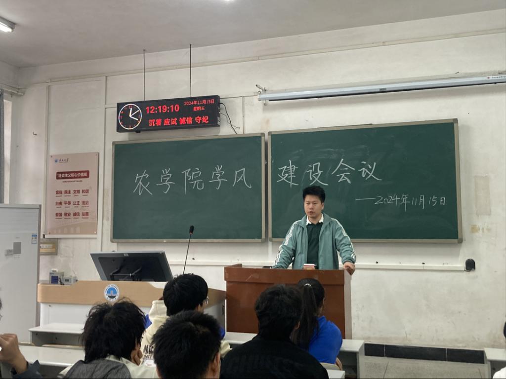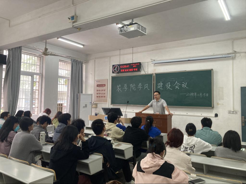 (通讯员 张文嘉)2024年11月15日中午12:15,为进一步规范教学秩序,提高教学质量,正规滚球app平台官网全面加强查课力度,在七教108顺利召开正规滚球app平台官网学风建设会议。到场的人员有正规滚球app平台官网党委副书记尹小华、正规滚球app平台官网学工办主任黄承石老师及22级、23级、24级各班学委,共同探讨学风建设相关事宜。